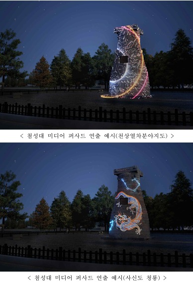 기존의 단순한 투광조명 방식에서 벗어나 첨성대 외벽 전체를 거대한 무대로 활용하는 프로젝션 매핑 기술을 통해 약 7분간 첨성대의 역사적 의미와 신라의 위대한 문화유산을 담아낸 「별의 시간」과 신라의 찬란한 문화의 「황금의 나라」가 상영될 것이다.