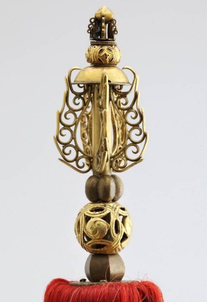 「온양민속박물관 소장 갑주(甲冑)와 갑주함(甲冑函)」 - 투구(간주 부분 보주와 화염 모양 장식)