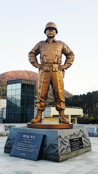 미국 트루먼 대통령 . 이승만 대통령 동상, 위는 백선엽 장군
