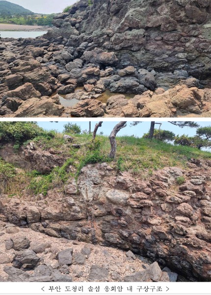 (부안 도청리 솔섬 응회암 내 구상구조) 백악기말 화산활동으로 만들어진 ‘포도송이’ 구조의 독특한 화산암