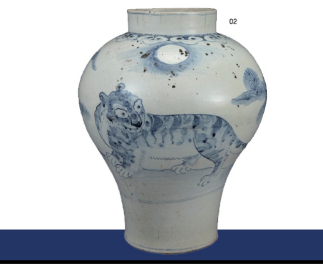 02.)〈백자청화송호문호〉, 18~19세기 Ⓒ국립중앙박물관