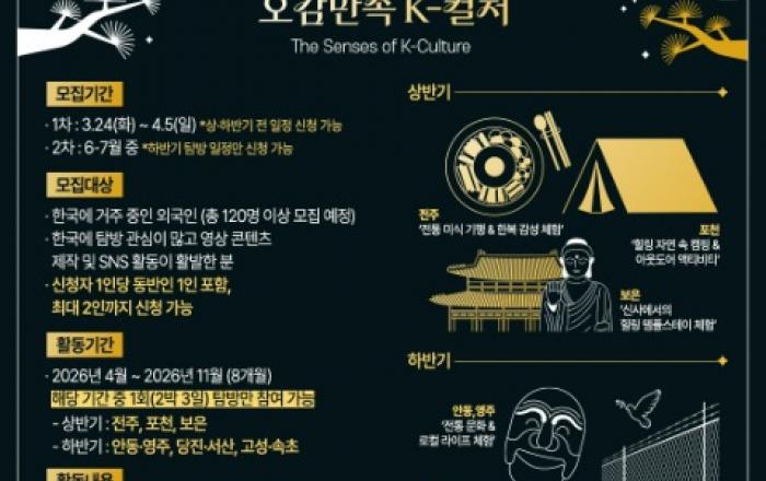 주한 외국인, 오감 만족 여행으로 한국의 ‘맛·멋·쉼’ 알린다- 4~11월 주한 외국인 콘텐츠 창작자 120여 명 참여, 한국문화 체험행사 6회 운영- 태국 공영방송사 등 해외 방송사와 협업, 예능·유튜브 콘텐츠로 제작·확산 문화체육관광부(장관 최휘영, 이하 문체부)