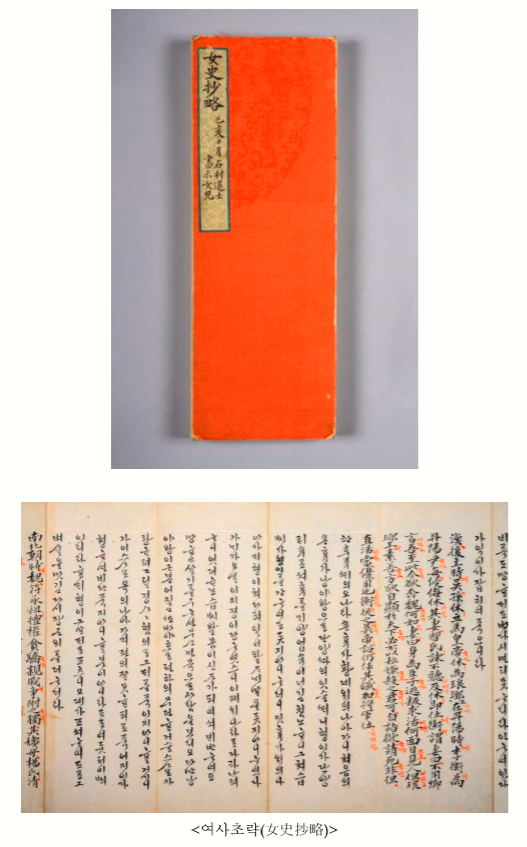 한글 역사서에는 「정사기람(正史紀覽)」과 「여사초략(女史抄略)」 등이 있는데, 「정사기람」은 덕온공주의 아들 윤용구가 고종의 명을 받아 왕실 여성들을 위해 쓴 역사책이며, 「여사초략」은 윤용구가 당시 12살이던 딸 윤백영을 위해 여성과 관련된 역사를 발췌해서 작성한 책이다.
