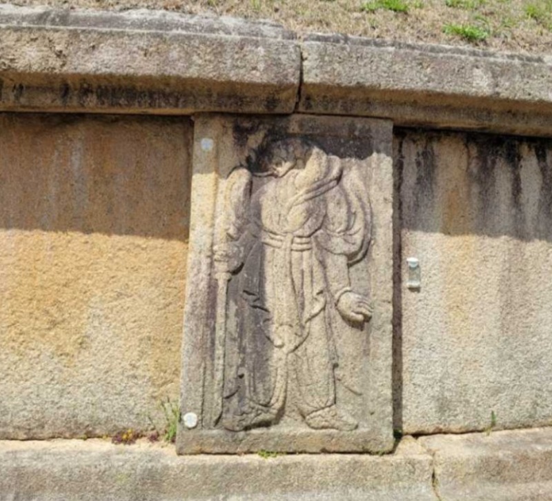 묘는 30m에 달하는 큰 원형인데, 둘레에는 24장의 호석과 돌난간을 둘렀고 호석과 돌난간 사이의 바닥에는 돌을 깔았다. 호석은 12지신상이 새겨져 있는데, 대개의 경우 능을 지키는 수호신으로는 갑옷을 입은 조각들이 새겨져 있으나, 이 묘의 12지신상은 평복을 입고 무기를 들었다. 몸체는 정면을 보고 서 있으나, 오른쪽으로 고개를 돌려 주시하는 모습이 이색적이며 무장을 하지 않아 매우 온화해 보인다. 경주 왕릉에는 몇 군데 지신상(支神像) 조각이 보이나 조각의 우수함이나 상의 거대함에 있어 이 묘를 따를 수 없다. 정태상