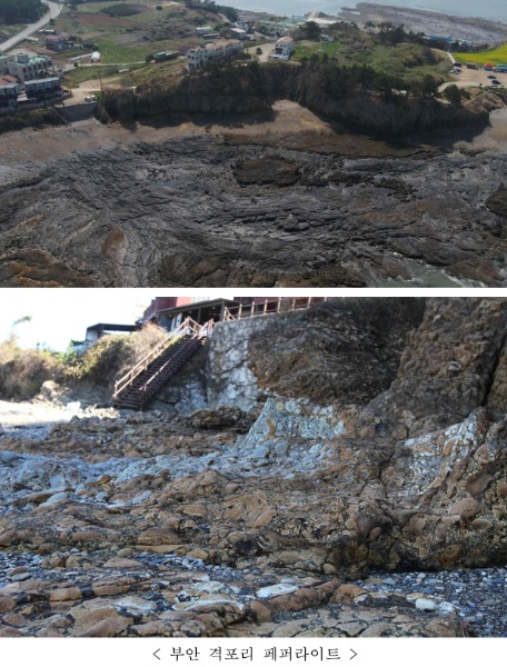 「부안 격포리 페퍼라이트」는 변산반도 서쪽 끝에 위치한 적벽강 해안가 절벽을 따라 상부의 곰소유문암층(화산암층)과 하부의 격포리층(퇴적암층) 경계 사이에 두께 약 1m 내외의 층이다.