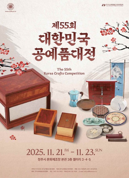 국가유산청(청장 허민)은 한국공예협동조합연합회(회장 소순주)와 함께 11월 21일부터 23일까지 문화제조창 갤러리 3·4·5관(충북 청주시)에서 「제55회 대한민국공예품대전」을 개최한다.