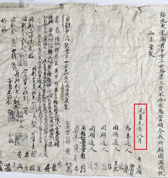 구미 대둔사와 동국대 문화유산연구소는 보물 구미 대둔사 건칠아미타여래좌상의 복장 유물을 조사한 결과, 1295년에 제작됐음을 알려주는 불상 조성 발원문을 찾아냈다고 21일 밝혔다.