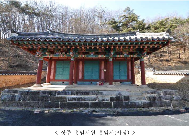 「상주 흥암서원」은 조선 후기 남인의 중심지인 영남지역에 건립된 대표적인 서인 노론계 서원으로, 동춘당 송준길(同春堂 宋浚吉, 1606~1672년)을 제향하는 서원이다. 1702년 창건되어 1705년에 사액을 받았으며, 1762년에 현 위치로 이건되었다. 서원철폐령에도 훼철되지 않은 전국 47개소 사액서원 중 하나로 가치가 있다.