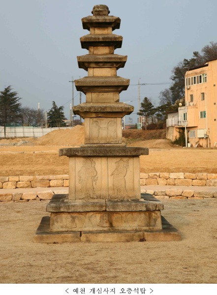 「예천 개심사지지 오층석탑」은 석탑에 새겨진 명문으로 건립 목적과 과정, 시기 등을 명확히 알 수 있고, 아래층 기단에서 1층 탑신까지 십이지상-팔부중상-금강역사상을 부조 방식으로 조각하여 불교 교리를 충실하게 반영하는 등 역사적, 학술적, 예술적 가치가 뛰어나다.