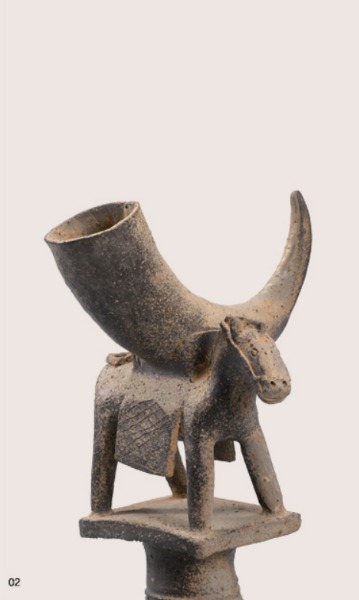 02.삼국시대 유물로 추정되는 말장식뿔잔 Ⓒ국립중앙박물관 03.국보 도기 기마인물형 명기 Ⓒ국립중앙박물관