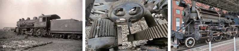 01.운행 당시 터우형 증기기관차 02.차체 하부 동륜과 연결된 모터 03.터우의 오른쪽 면. 절개된 모습을 확인할 수 있다