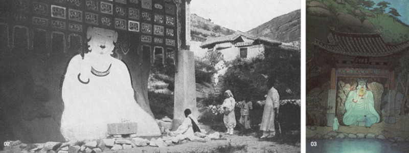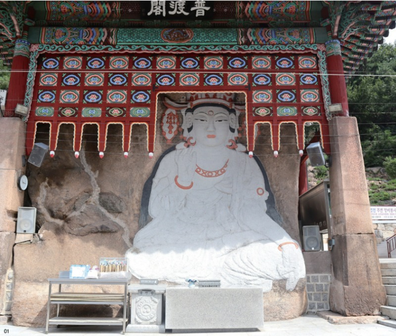 반면 이런 시선으로 옥천암 보살상을 바라본 조선인의 기록은 좀처럼 확인되지 않는다. 물론 이는 당연한 부재일지 모른다. 백색 분으로 온몸을 단장한 불상은 당시 조선 곳곳에 자리했던 그들에게는 너무나 익숙했던 일상 풍경이었기 때문이다. 근대 초 사찰 경내를 촬영한 사진에서는 백색 불상과 금색 불상이 한 전각 안에 나란히 봉안된 모습을 어렵지않게 확인할 수 있다. 그 유명한 국보 금동미륵보살반가사유상(1962-2)과 불국사의 쌍둥이 금동불상, 옥천암 보살상과 자주 비견되는 보타사의 마애보살상 모두 한때는 백색을 띠고 있었다.
