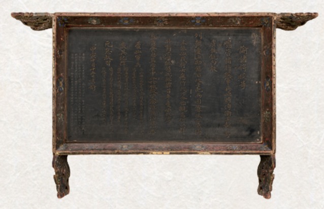 ‘영조 어제어필 제장교등 유서 현판’은 1734년 영조가 관무재(觀武才)에 참석한 장교와 군병에게 내린 가르침을 새긴 현판이다. 이 현판은 군율을 확립하고 왕권을 강화하고자 한 영조의 통치 철학을 보여주는 자료라는 점에서 중요한 의미를 지닌다. 현판에 새겨진 내용은 『조선왕조실록』과 『승정원일기』의 기록과 일치하며, 그 당시 오군문(五軍門)에 걸렸던 5개 현판 가운데 현재까지 실물이 확인된 유일한 사례이다. 또한 봉황과 용머리 형태의 봉 장식을 갖춘 현판 형식이 매우 희소하고 보존 상태도 양호하여 전시와 연구 측면에서 활용 가치가 크다. / 자료 국외소재문화유산재단