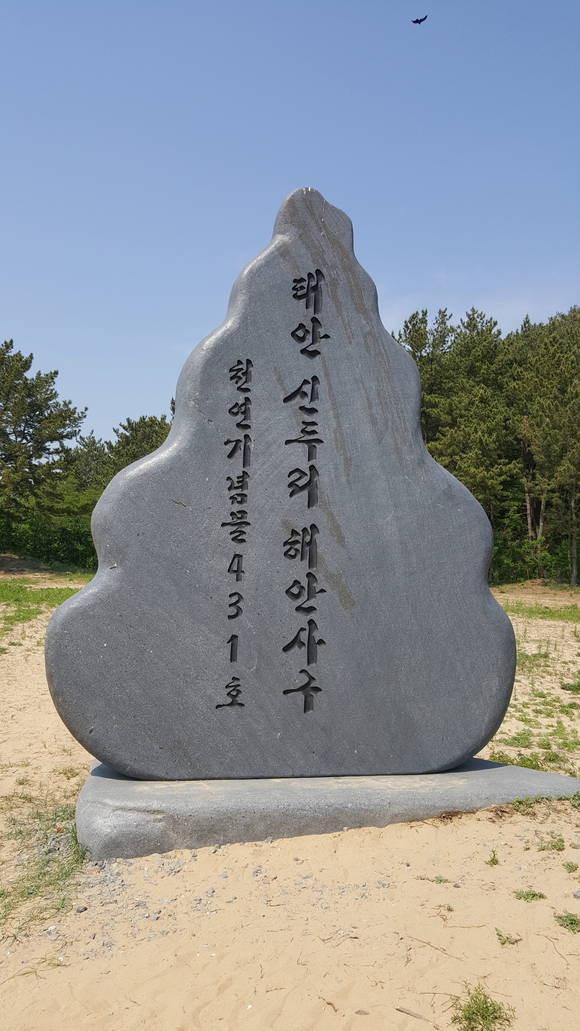 이곳은 연안의 해저가 대체로 모래로 구성되어 있어서 간조시에 넓은 모래펄이 노출되는데다가, 겨울철에 강력한 북서풍을 바로 받아들이는 위치에 해당하여 대규모의 모래벌판이 형성될 수 있었다. 2001년 11월 30일에 천연기념물 제431호로 지정되었는데, 지정구역은 1,702,165㎡이다.