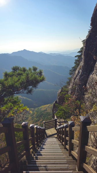 팔공산 하늘정원은 군부대 부지를 활용하여 공원을 조성한 정상 주변에 위치하며 하늘과 가까이 닿은 넓은 자연학습장으로, 정자에 앉아 시원한 바람을 맞으며 주변 능선을 바라볼 수 있는 곳으로, 군위군과 영천시, 구미시 일대까지 한눈에 내려다보인다. 전망대에 서면 청운대 절벽과 팔공산 능선이 시원하게 펼쳐지며, 이곳은 비로봉, 동봉, 서봉 등 주요 봉우리로 이어지는 길목이기도 하다. 짧은 산행으로도 탁 트인 조망과 고요한 자연을 함께 누릴 수 있는 장소다. 주차장에서 데크길로 이어지는, 계단 진입로를 따라 오르는 길가에는 계절마다 피고 지는 야생화와 억새가 산길을 아름답게 수놓고 있다. 하늘정원이 있는 이곳은 바위산 주변으로 단풍이 화려하고 기암괴석과 어우러지는 풍경이 한 폭의 그림같이 아름다운 모습이다. 하늘정원에서 비로봉으로 가는 길은 비교적 완만한 숲길이므로, 경치도 즐기면서 정상까지 1시간 정도면 다녀올 수 있는 코스이다. 또한, 청운대, 원효굴, 오도암 등 다양한 명소들을 함께 방문할 수 있는 코스도 있다. 산림청과 블랙야크가 선정한 100대 명산에도 선정되었다.