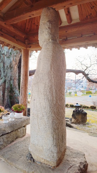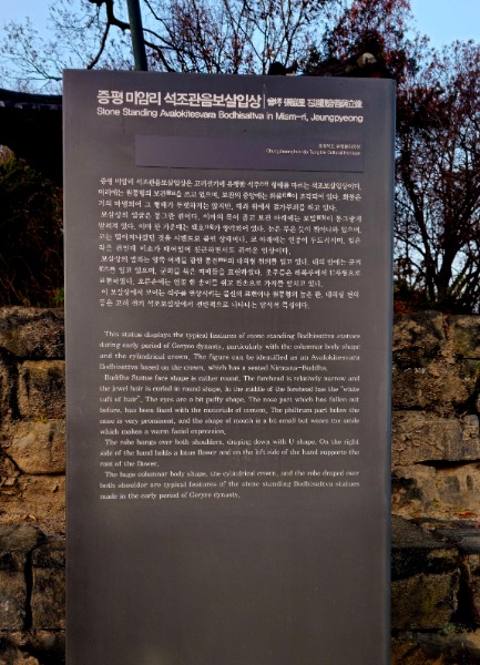 이 석조관음보살입상은 증평읍 미암리 사지에서 출토되었으나 현재는 증평읍 송산리 미륵사옆에 있다.