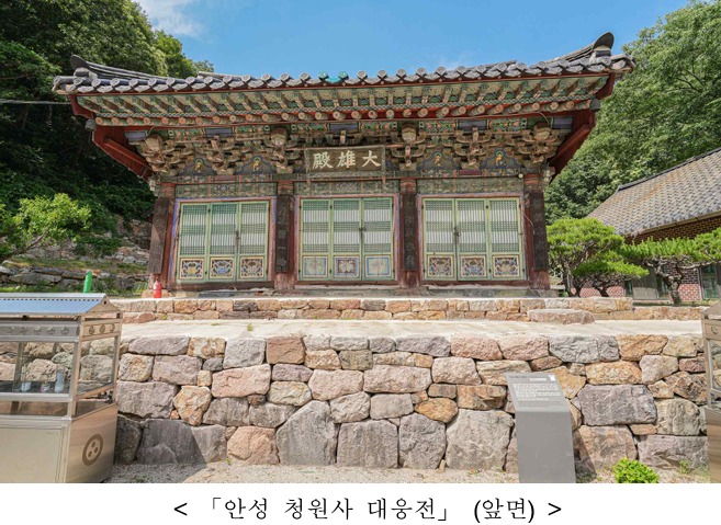 국가유산청(청장 허민)은 고려 말에서 조선시대로 이어지는 건축형식과 시대적 변화 양상을 보여주는 「안성 청원사 대웅전(安城 淸源寺 大雄殿)」을 국가지정문화유산 보물로 지정하였다.