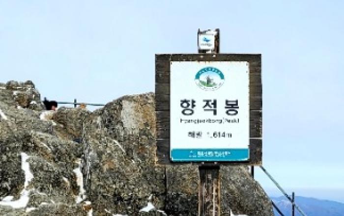 덕유산 향적봉덕유산 향적봉은 1,614m로 우리나라 남한에서 네 번째 높은 산이지만, 무주스키장 곤돌라를 타고 15분만에 1,525m 설천봉에 올라 갈 수 있다. 곤돌라에서 내리자마자 아이젠을 착용하고, 설천봉에서 정상인 향적봉(1,614m)으로 올라간다. 정상까지는