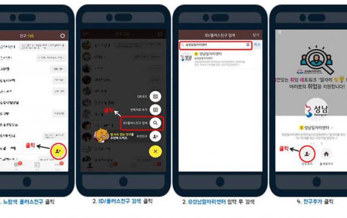 직장을 구하려는 성남시민은 앞으로 휴대폰 카카오톡 메시지로 채용 정보를 받을 수 있게 됐다. 성남시는 카카오톡을 통해 구인·구직자에 필요한 정보를 제공하는 ‘일자리 쌤’ 모바일 서비스를 올해 초 도입했다. 카카오톡 플러스친구에 ‘성남일자리센터’를 추가하면 성