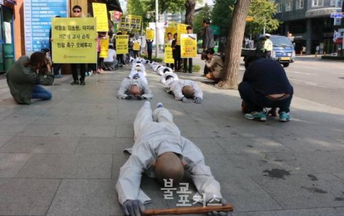 3대 종교의 요구는 단 하나 “목숨 차별 말라”조계종 노동위 등 3대 종교, 세월호 기간제 교사 순직 인정 촉구 오체투지불교, 천주교, 개신교가 모두 한 목소리를 내며 아스팔트 바닥에 엎드리며 읍소했다. 이들이 요구하는 것은 단 하나. 죽음 앞에서만큼은 사람을 차별하지
