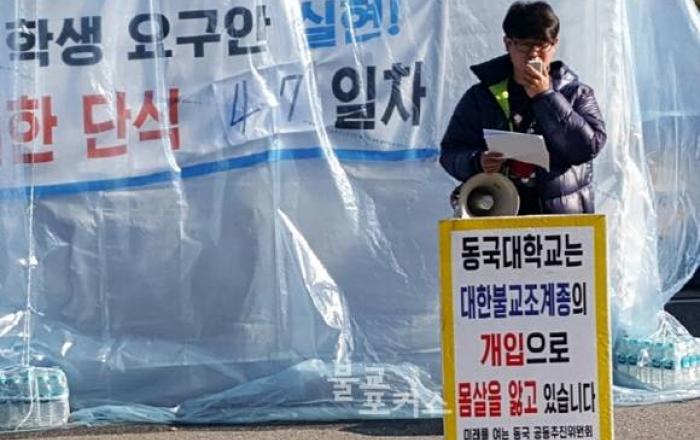 단식 40일…학생이 죽어갑니다 동국대 김건중 부총학생회장 “이사장 일면 스님 사퇴해야” ▲ 단식이 길이질수록 김건중 부총학생회장이