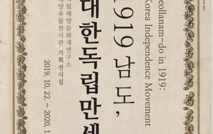 잊혀진 남도의 독립운동가들을 만나다 - 「1919 남도, 대한독립만세!」 / 10.22.~2020.1.27. 해양유물전시관 - 문화재청 국립해양문화재연구소(소장 이귀영)는 목포시(시장 김종식)와 오는 22일 개막식을 시작으로 2