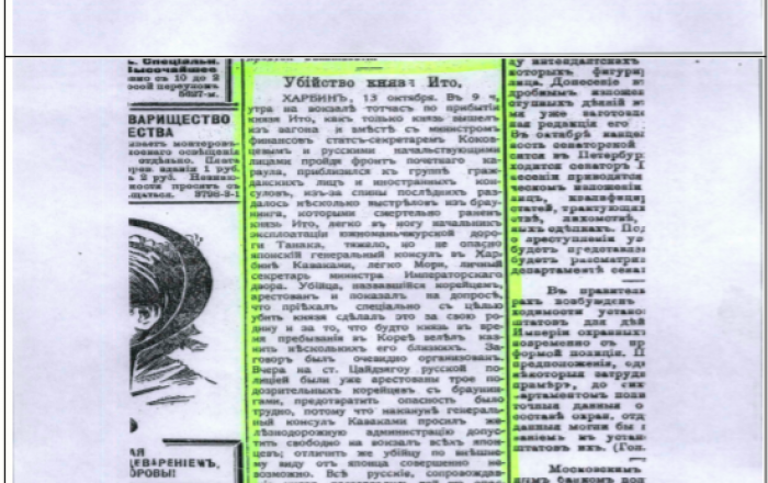 “나는 조국해방의 첫 번째 선구자”, 그는 역시 영웅이었다. - 안중근 의사 의거 관련 러시아 극동지역 신문기사 수집·공개 - 체포과정, 심문내용, 러시아의 상황인식 등 사료적 가치 매우 높아 □ “죽음이 두렵지 않다