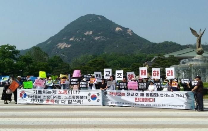 전학연(전국학부모단체연합)은 5.24일 청와대 분수대 앞에서 기자회견을 갖고, 전교조의 법외노조취소요청에 대하여 반박히는 성명서를 발표하였다. <
