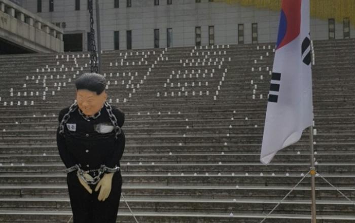 쇠사슬에 묶여 처형되는 김정은 5월 25일 광화문 세종문화회관 계단에 북한 김정은 위원장이 쇠사슬에 묶여 처형되는 장면이 연출되었다. 뒤 계단에는 '좌파독재정권퇴진'이라고 되어 있다. 세계적으로 독재