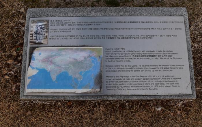 평택호를 굽이돌아 마안산 입구 모래톱공원에 평택시가 2009년5월에 세운 혜초기념비가 서있다. 혜초는 신라 성덕왕때의 고승이며, 700년 전후로 출생한 것으로 추정되며, 사망은 중국 오대산 건원보리사에서 787년에 입적한 것으로 알려졌으며, 서라벌(경주)에서