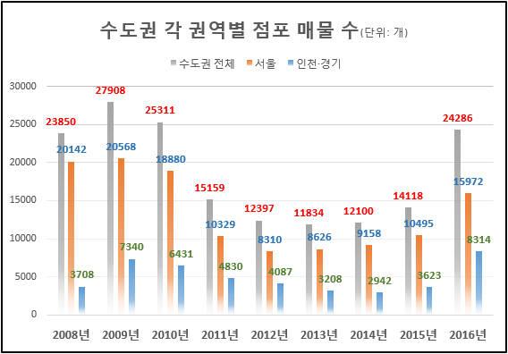 ◇전년 대비 급증한 점포매물 수, 인천·경기 지역 경기침체 심화