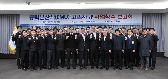 현대자동차그룹의 종합중공업회사 현대로템은 12일 한국철도공사 대전 본사에서 코레일 정현우 차량기술단장, 안병호 운전기술 단장, 김진돌 엔지니어링센터장 등을 비롯해 현대로템 관계자들이 참석한 가운데 동력분산식 고속열차 사업착수 보고회를 개최했다고 13일 밝혔다.