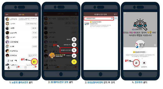 카카오톡 플러스친구에 ‘성남일자리센터’를 추가하면 성남시 일자리전문 직업상담사인 일자리 쌤과 1 대 1 채팅이 이뤄져 구직 또는 구인과 관련된 질문을 하고 답을 얻을 수 있다.