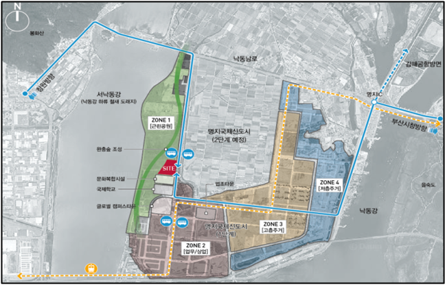 명지국제신도시 근린공원(1호)내에 들어설 예정인 국회도서관 분관 공모 당선작은 연면적 13,708㎡, 지상 3층으로 계획되었다. 국회도서관 분관이 지식 기반시대를 이끌어갈 문화·학술자원과 지식콘텐츠를 갖춘 동남권 최대 국립도서관인 만큼 조선시대 사고(史庫)와 국회의사당을 형상화하여 전통양식에 현대적 느낌을 잘 표현하였다는 평가를 받고 있다.