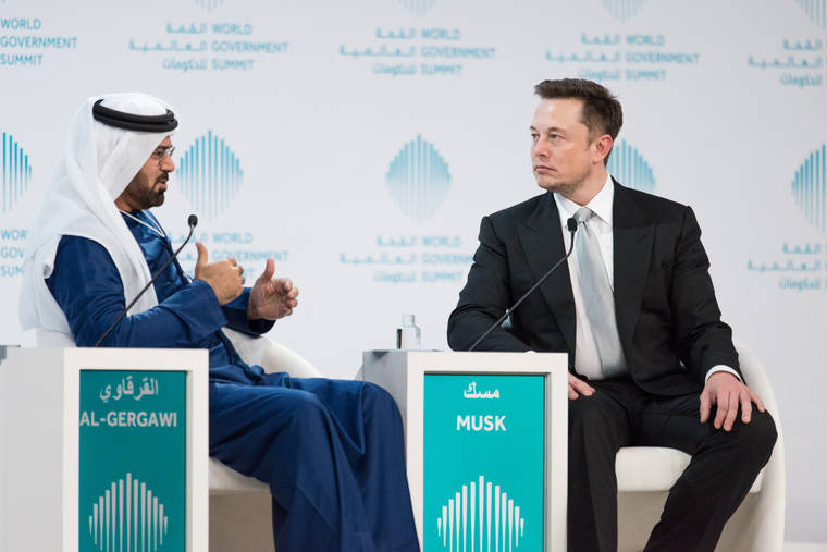 머스크와의 세션에 앞서 마타 알 테이어(Mattar Al Tayer) 두바이 도로교통청장은 사람을 수송하는 드론이 2017년 7월부터 대중교통 서비스에 편입될 예정이라고 밝혔다.