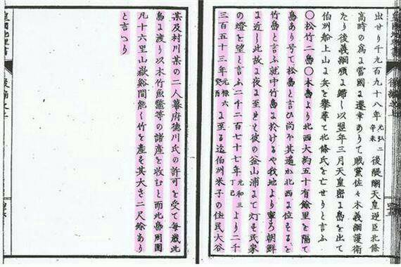 ‘개정 일본지지요략(1886년판)‘은 오키국 서북 해상에 독도(松島)·울릉도(竹島) 두 섬이 있고, 서로의 거리는 약 100리이며 태정관 결정으로 그 나라(조선)에 속하는 섬이 됐다고 기술했다.