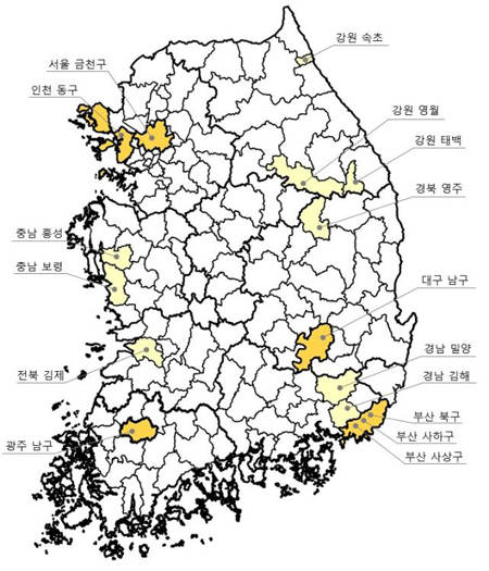 선정된 곳은 한국전쟁 피난민이 정착한 산간 달동네가 많다. 환경오염 위험에 노출된 공단·공장 배후지역, 기반 시설이 열악한 규제 지역 등이다.