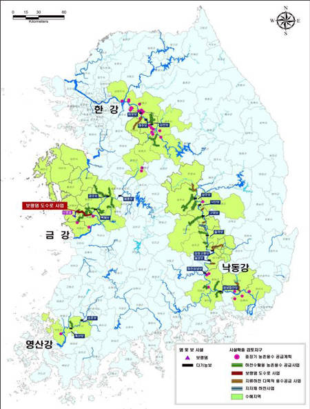 이번 연구용역에서는 이러한 조사평가위원회의 결과를 반영해 물 활용의 공간적 범위를 확대하고 가뭄대응 능력을 향상시키기 위해 본류 이외의 가뭄지역 또는 용수공급이 필요한 지역에 4대강 사업으로 확보된 물을 공급할 수 있는 방안을 마련했다.