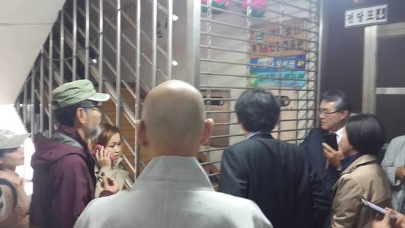 경기불교문화원은 철제봉으로 된 출입문을 내리고 자물쇠를 채워 법당 출입을 봉쇄했다. 문화원의 한 관계자는 법회 장소 이동을 알리는 메모를 붙이는 것에 대해 “경찰에 신고하겠다”면서 과민반응을 보였다.