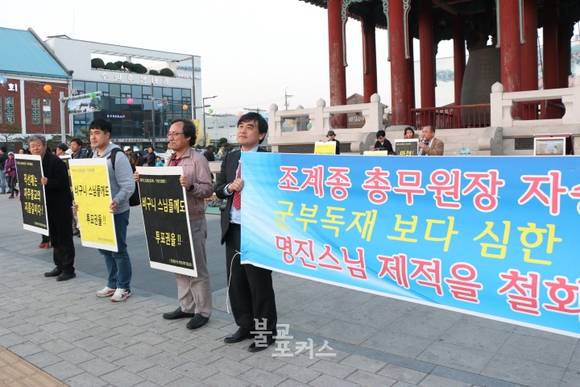 재임을 하지 않겠다는 약속을 지키지 않는 자승스님에 대해서는 바라이죄를 저지른 것이라고 강하게 비판했다. “재임 안 하겠다고 국민들과 불자들에게 공언을 한 것이다. 대중을 상대로 한 거짓말은 바라이죄다. 바라이죄는 불통참회, 참회도 안 된다. 승복을 벗겨서 내쫓는 것이다.”