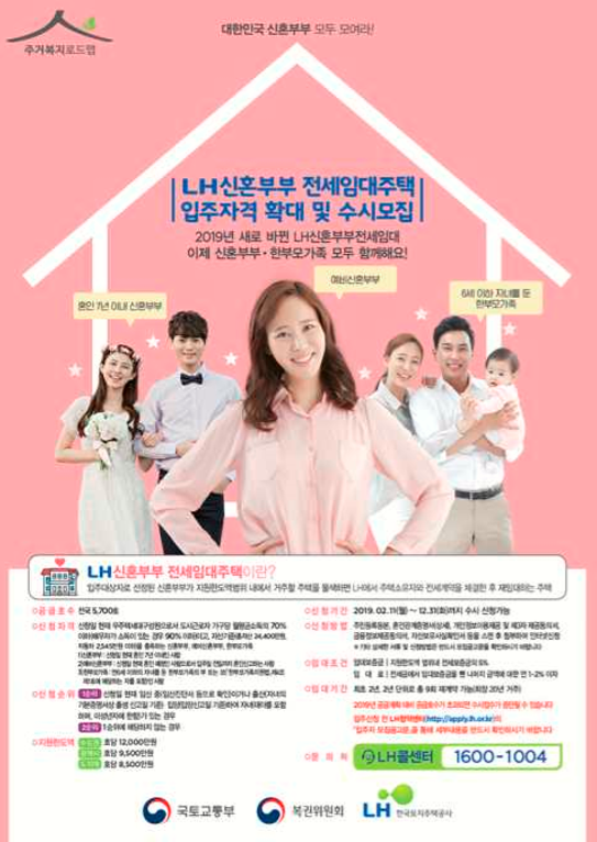 (신혼부부) 사업대상지역 거주요건 삭제, 맞벌이의 경우 소득기준 완화(소득 70% 이하→90% 이하), 6세 이하 자녀를 둔 한부모 가족은 신혼부부와 동등한 입주자격 인정