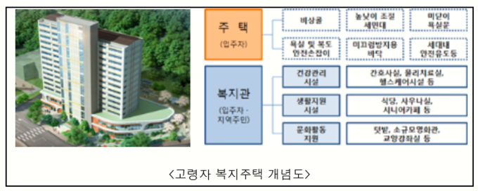 □ 고령자복지주택은 독거노인 등 어르신들이 주거지내에서 편리하게 복지서비스를 이용할 수 있도록 주택과 복지시설을 복합건설하는 공공임대주택이다.