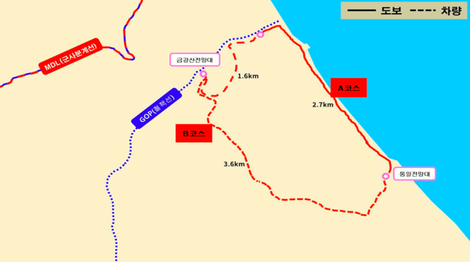※ 통일전망대에서 금강산전망대까지 왕복구간을 차량으로 이동하는 별도 구간도 운영 예정