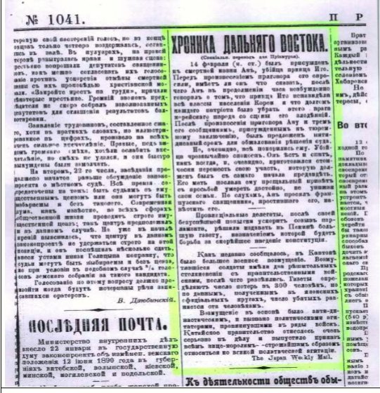 10월 14일(10월 27일)부터 타이렌, 무크데나, 니코우 등에서 발행되는 일본 신문들은 이토가 암살되었다는 사실을 보도하였다.