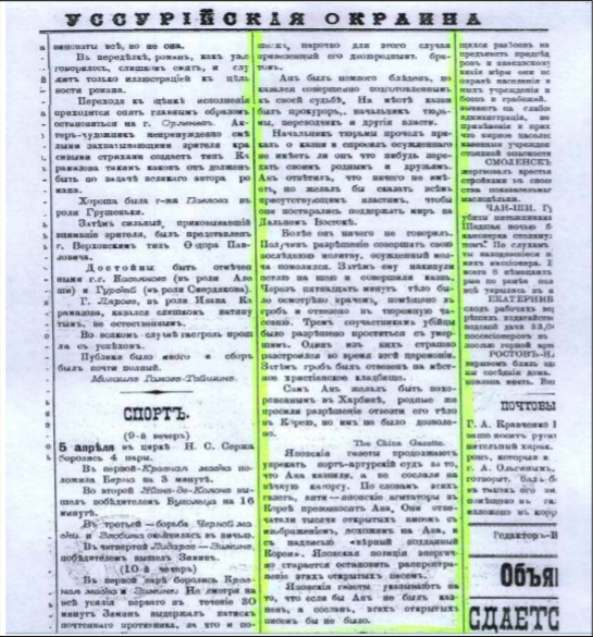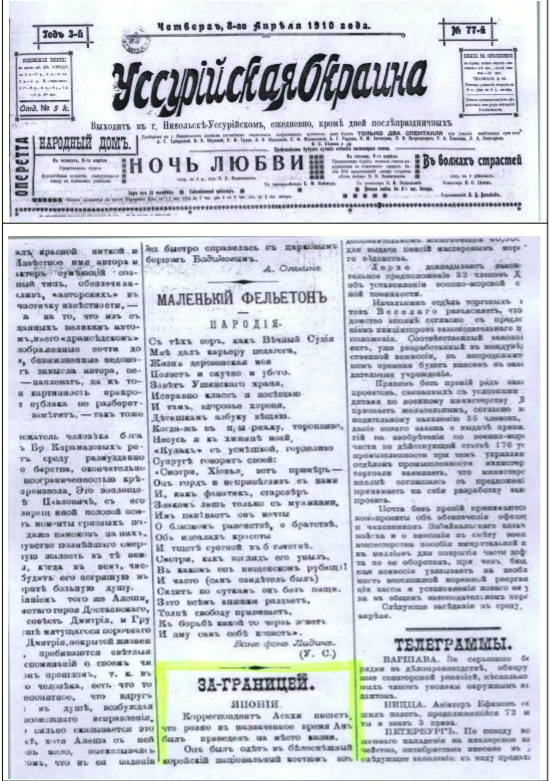 【붙임 6】우수리스까야 아끄라이나, 1910년 4월 8일(4월 21일)