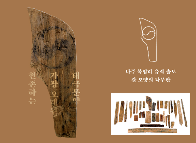 지금까지 발견된 것 중 가장 오래된 태극 무늬가 그려진 목제품이 2009년 나주 복암리 고분군(사적 제404호)에서 발굴됐다. 이와 함께 국내 최초로 봉함목간(封緘木簡)도 출토됐다. 봉함목간은 관청에서 기밀을 필요로 하는 문서나 물건을 운송할 때 사용한 목간으로 중국, 일본 등에서 봉검(封檢)이라고 불리며 발굴된 바가 있으나 국내에서는 발견된 바가 없었다.
