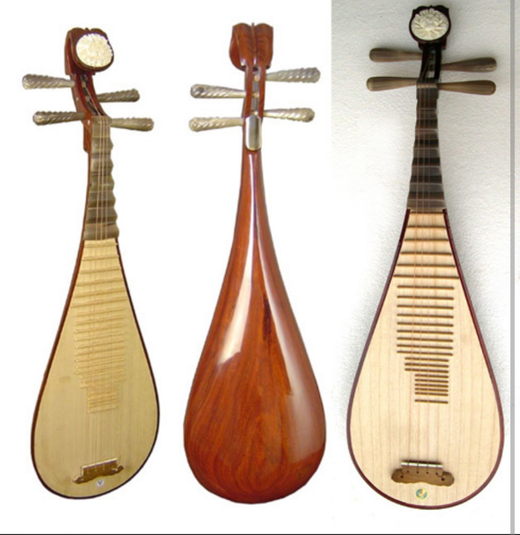 ◆ 비파 : 현악기의 하나. 타원형의 몸통에 짧은 자루가 달려 있으며, 4줄로 된 당비파와 5줄로 된