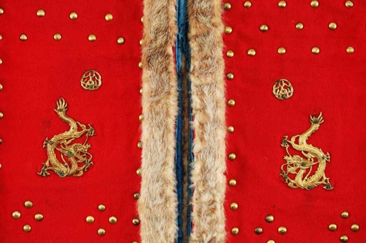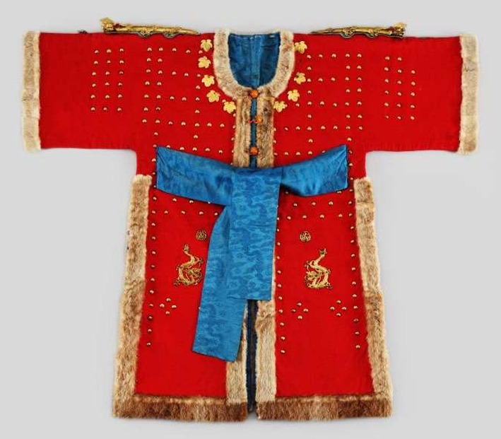 홍색 전(氈)과 청색 운보문단(雲寶文緞)으로 지은 갑옷은 조선후기의 전형적인 두루마기형 전갑(氈甲)의 형식을 취하고 있는데, 좌우대칭형이며 소매가 짧고, 활동이 편하도록 양 옆이 트여 있다. 갑옷의 겉감에 둥근 두정(頭頂, 금속으로 만든 둥글납작한 장식) 장식을 일정 간격으로 부착하고 금속으로 만든 사조룡(四爪龍, 발가락이 4개 달린 용)과 호랑이 형상, 여의주(如意珠) 등을 앞뒤에 부착하여 장식하였으며, 양 어깨에 부착한 용 형태의 견철(肩鐵, 갑옷 어깨 부분에 부착된 용 모양 장식)은 네 마디로 나뉜 몸에 용의 입과 혀가 함께 움직이도록 정교하게 제작된 점이 특징이다.