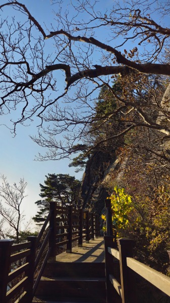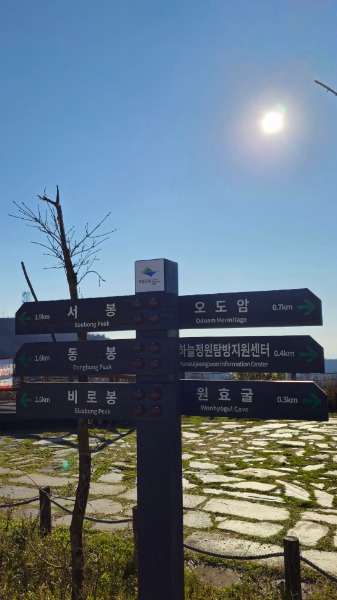 팔공산 하늘정원은 군부대 부지를 활용하여 공원을 조성한 정상 주변에 위치하며 하늘과 가까이 닿은 넓은 자연학습장으로, 정자에 앉아 시원한 바람을 맞으며 주변 능선을 바라볼 수 있는 곳으로, 군위군과 영천시, 구미시 일대까지 한눈에 내려다보인다. 전망대에 서면 청운대 절벽과 팔공산 능선이 시원하게 펼쳐지며, 이곳은 비로봉, 동봉, 서봉 등 주요 봉우리로 이어지는 길목이기도 하다. 짧은 산행으로도 탁 트인 조망과 고요한 자연을 함께 누릴 수 있는 장소다. 주차장에서 데크길로 이어지는, 계단 진입로를 따라 오르는 길가에는 계절마다 피고 지는 야생화와 억새가 산길을 아름답게 수놓고 있다. 하늘정원이 있는 이곳은 바위산 주변으로 단풍이 화려하고 기암괴석과 어우러지는 풍경이 한 폭의 그림같이 아름다운 모습이다. 하늘정원에서 비로봉으로 가는 길은 비교적 완만한 숲길이므로, 경치도 즐기면서 정상까지 1시간 정도면 다녀올 수 있는 코스이다. 또한, 청운대, 원효굴, 오도암 등 다양한 명소들을 함께 방문할 수 있는 코스도 있다. 산림청과 블랙야크가 선정한 100대 명산에도 선정되었다.