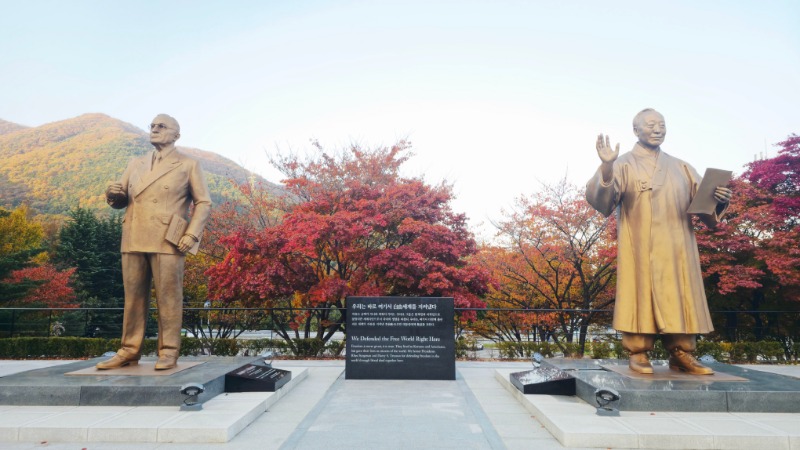 미국 트루먼 대통령 . 이승만 대통령 동상, 위는 백선엽 장군